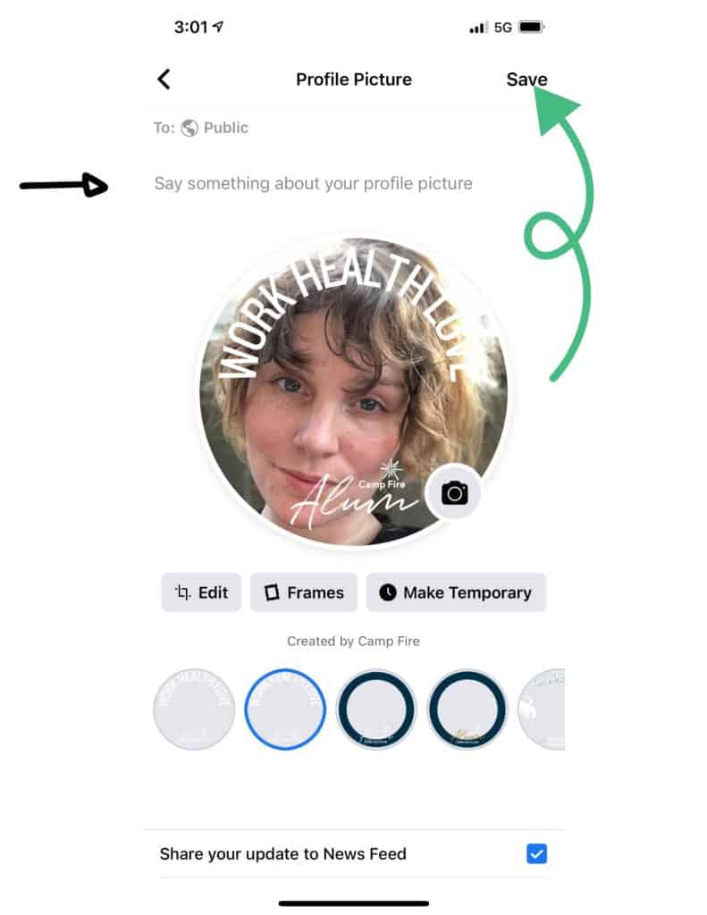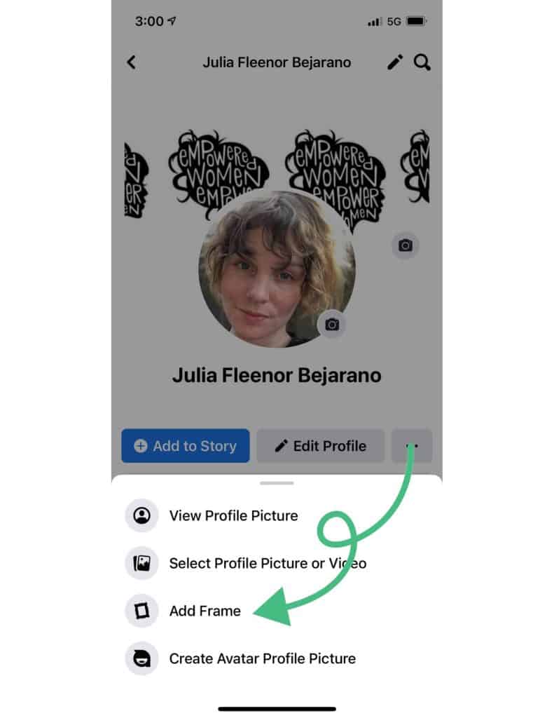 1. Hold down your profile photo until the menu pops up. Then. select ‘Add Frame”